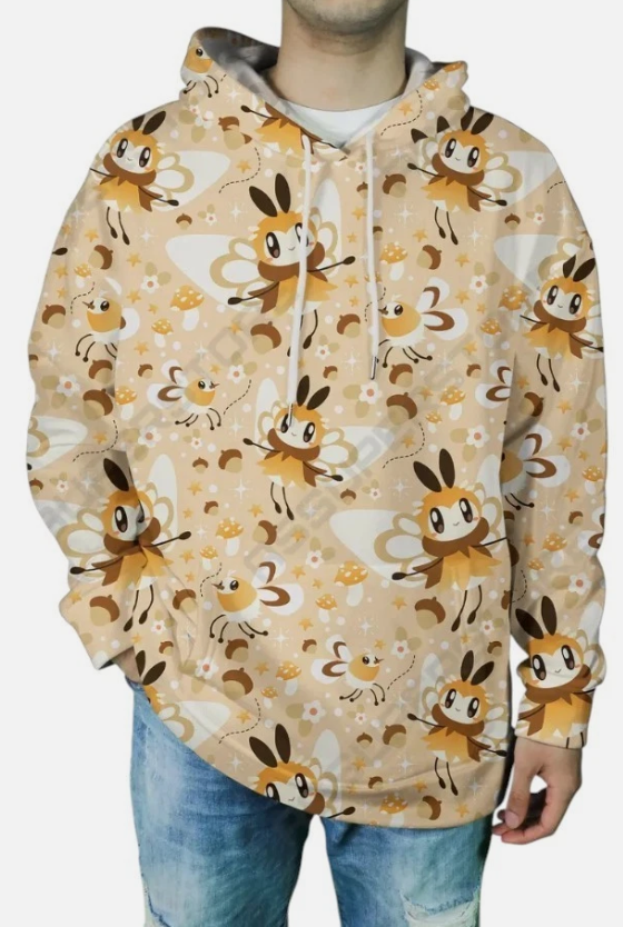 -Our all-over print hoodie features dropped shoulders and a pouch front pocket.