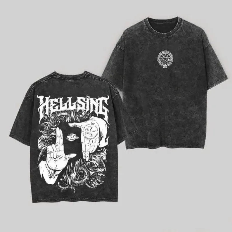Anime Vintage Washed Tee, Gothic Anime Graphic Shirt, Gift for Anime Fan, Washed T-Shirt