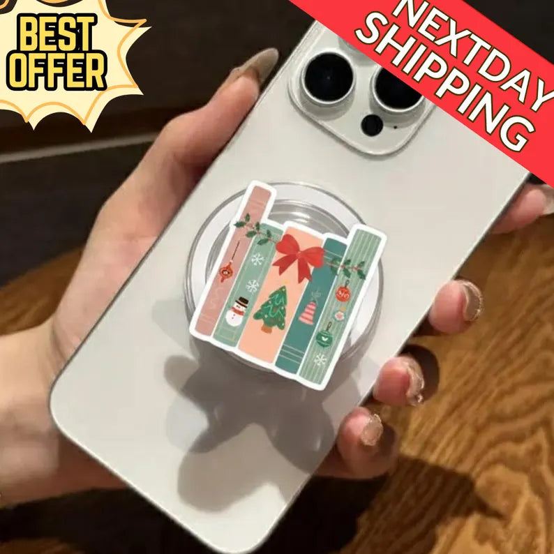 Christmas Bookshelf MagSafe Phone Grip β Cute Holiday Book Lover GripTok, Festive Magnetic Phone Stand Alternative, Bookish Gift for Readers