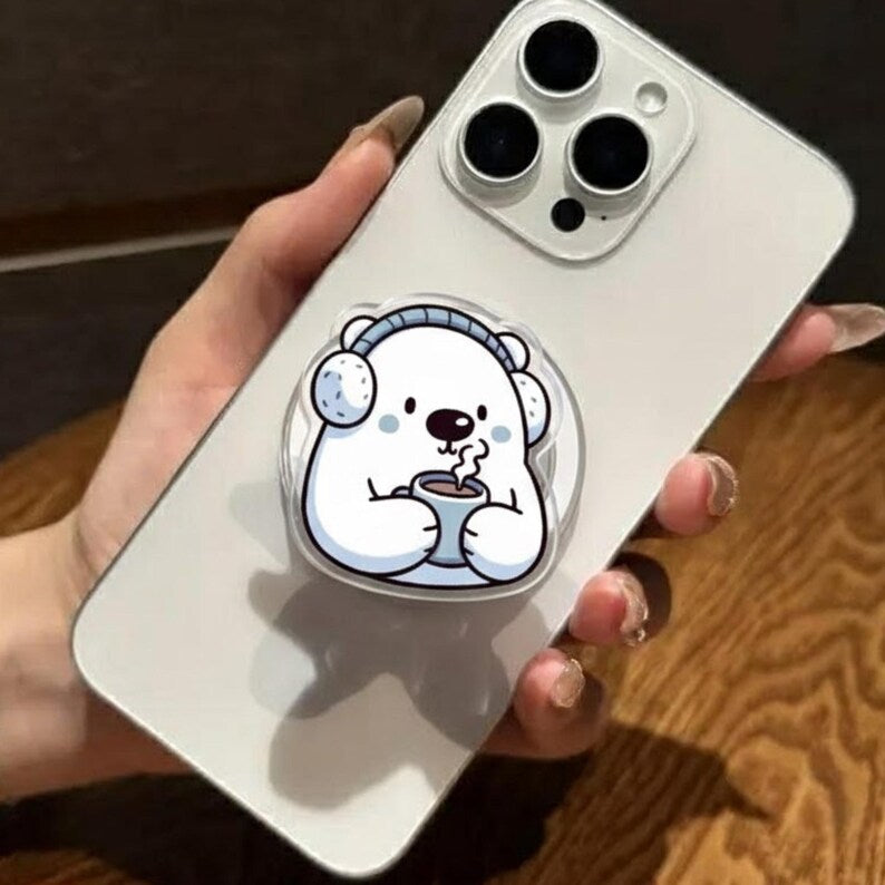 βοΈ Cute Polar Bear Phone Grip β Embrace the winter vibes with this adorable polar bear holding a steaming cup of warmth, complete with cozy earmuffs! This cute phone grip is perfect for those who love winter, hot drinks, and all things kawaii.
