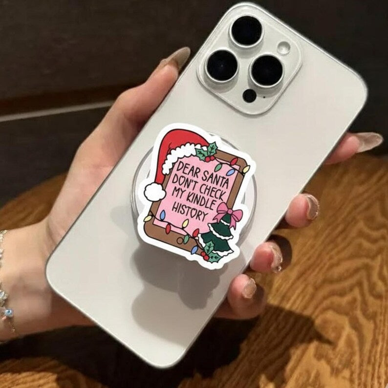 Dear Santa Don't Check My Kindle History Magnetic Phone Grip: Christmas MagSafe Popgrip, Funny Holiday Book Lover Gift, Cute Accessory