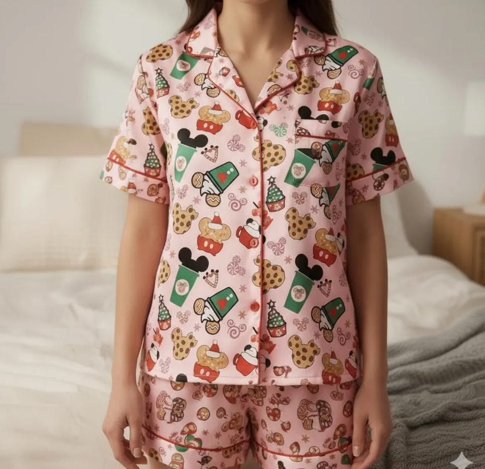 Disney Mickey Coffee Satin Pajama Set, Micky Mouse Christmas Drink Pajama, Disneyland Pjs, Disney Family Christmas Pajamas, Disney Christmas