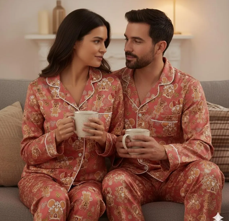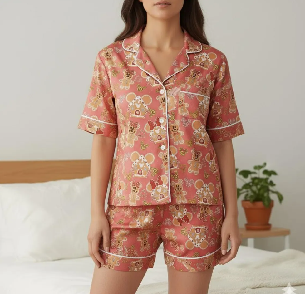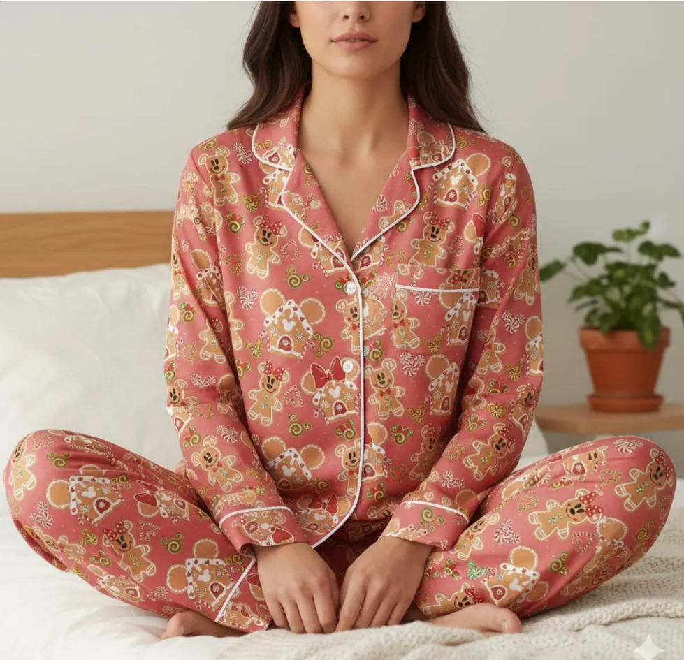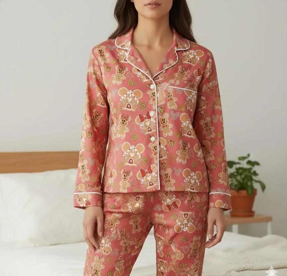 Disney Mickey Minnie Gingerbread Satin Pajama Set, Disney Christmas Cookie Pjs, Disneyland Pjs, Disney Family Xmas Pajamas, Disney Christmas