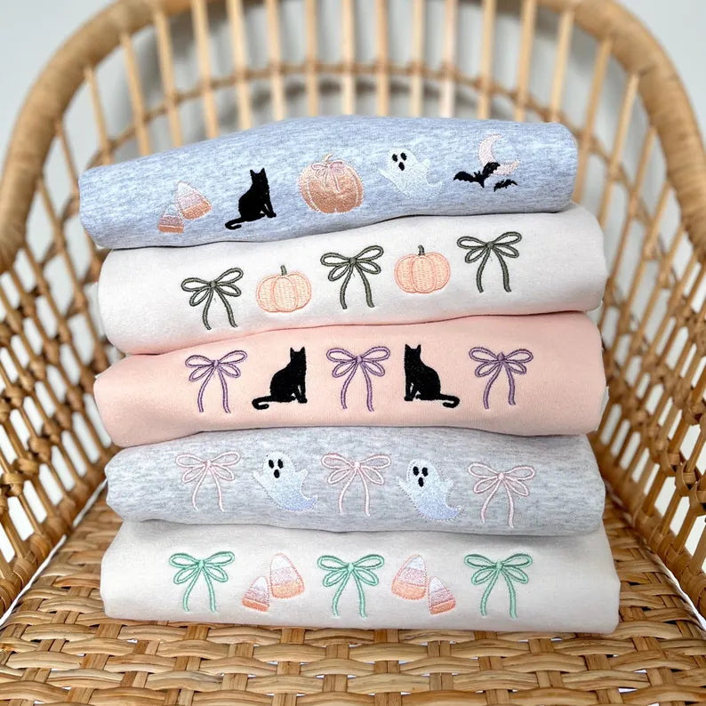 Embroidered Coquette Halloween Icon Crewneck Sweatshirt | Cute Halloween | Spooky Season