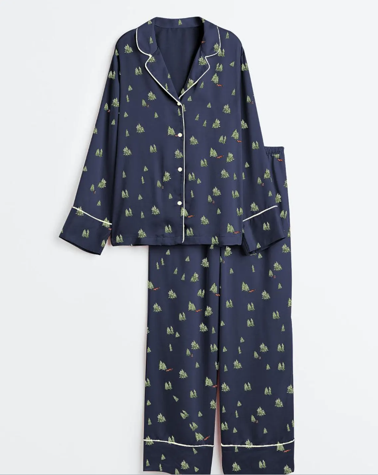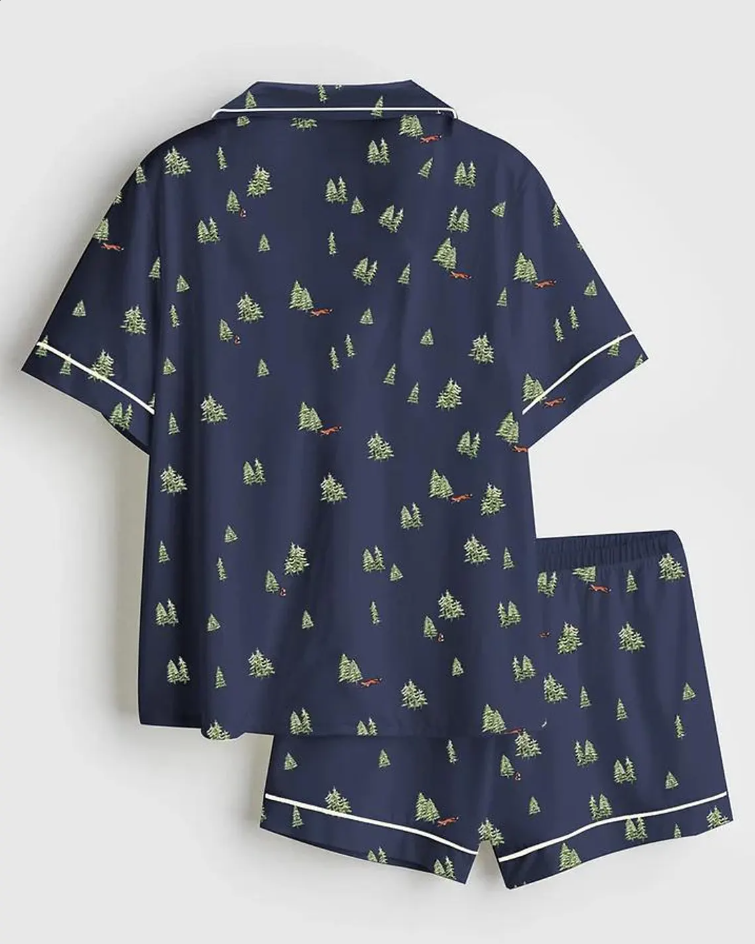 Women’s Satin Pajama Set, Christmas Tree Pajamas, Short Sleeve Holiday Pajamas, Winter Bride Sleepwear, Festive Pjs for Her, Pjs Christmas