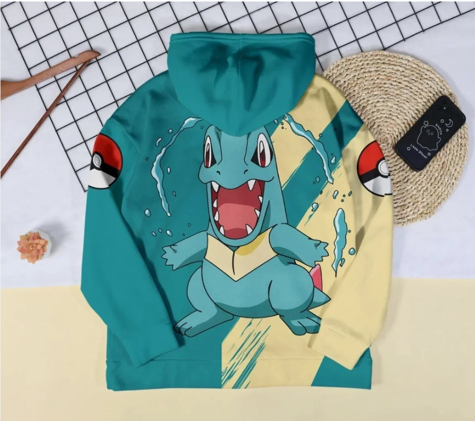 Totodile Hoodie, Cute Water Croc Hoodie, Blue and Cream Graphic Sweatshirt