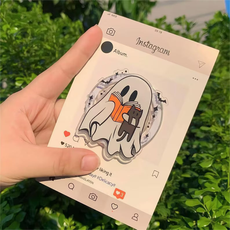 👻📚🐱 Ghost Holding Book and Cat MagSafe Phone Grip - Cute Spooky E-reader Stand Gift for Cat Lovers