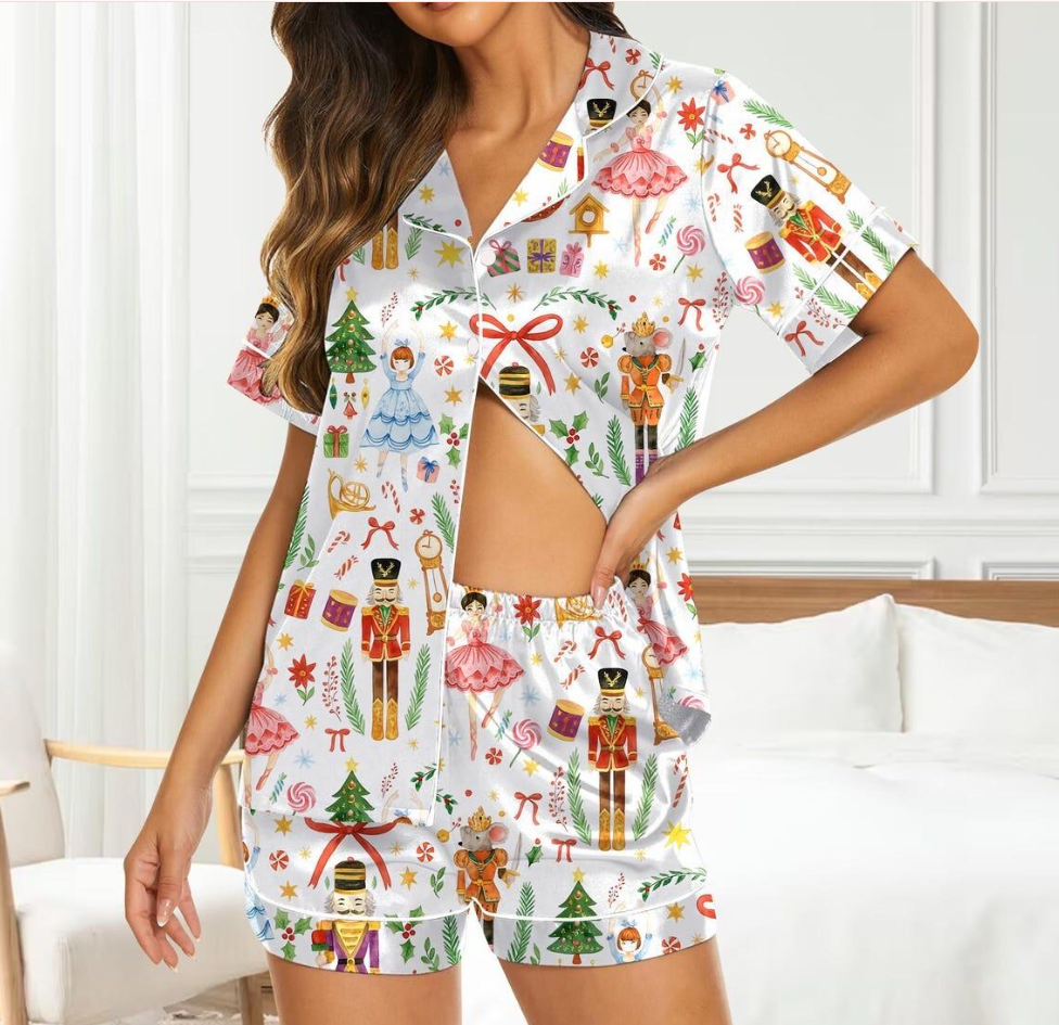 Christmas Nutcracker Ballet Holiday Party Vintage Pajama Set, Santa Ballet Nutcracker Sleepwear, Gifts Women Party Pajamas