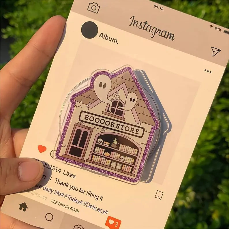 Haunted Bookstore MagSafe Phone Grip: Halloween Bookish Magnetic Phone Holder, Ghost Bookstore Phone Stand, Fall Book Lover Gift