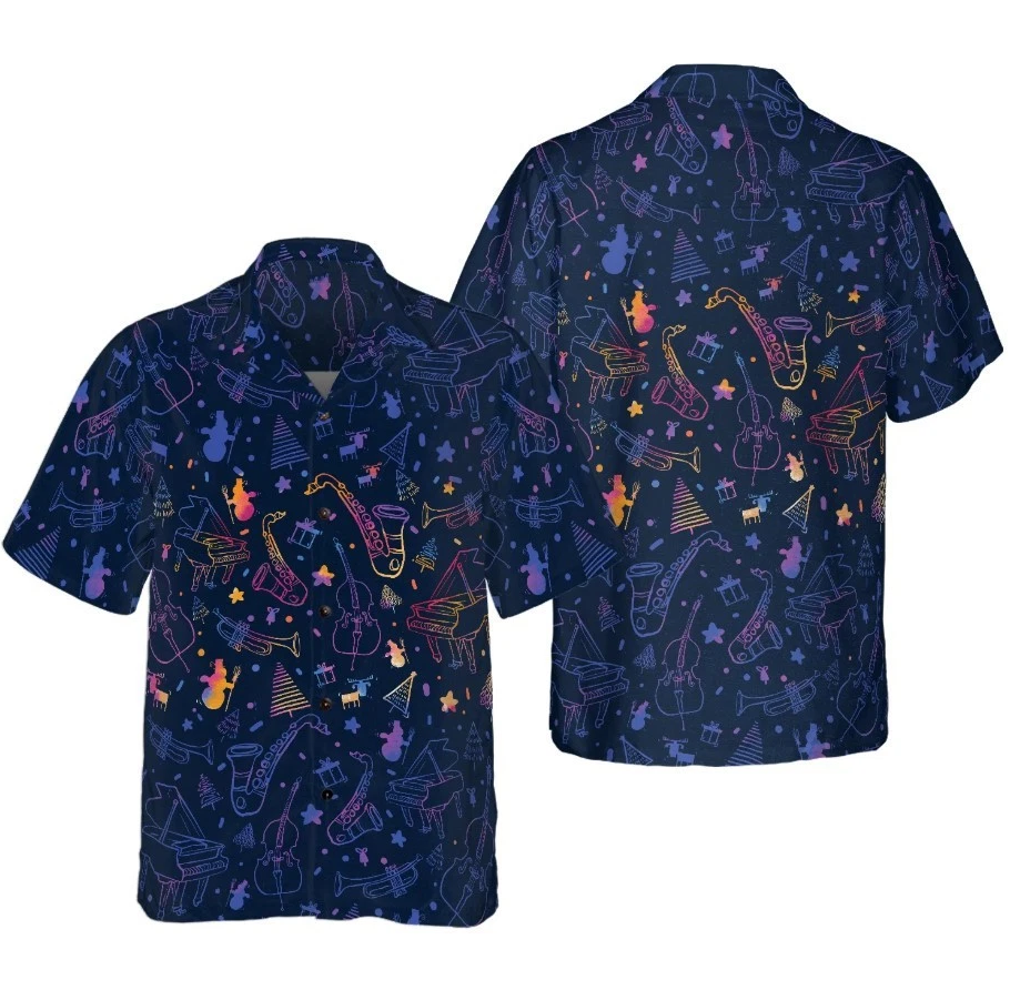 Christmas Hawaiian Shirts, Christmas Musical Instruments Pattern Shirt Short Sle