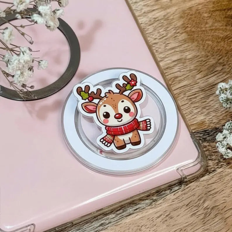 Reindeer Christmas Magnetic Phone Grip: Cute Holiday Reindeer MagSafe Griptok, Xmas Reindeer Phone Accessory, Xmas Reindeer Gift for Fans