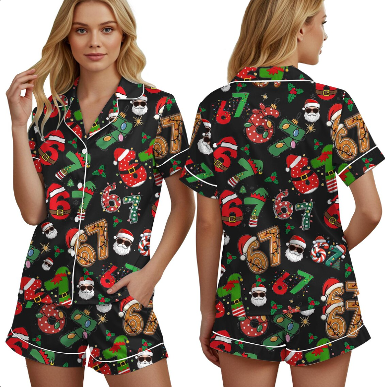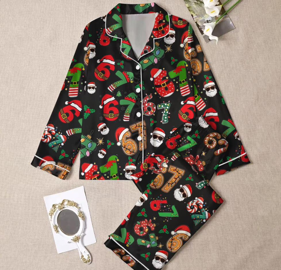 Meme '6 7' Six Seven Christmas Slang Meme For Kids & Adults, Personalized Pajama Set, Six Seven Meme Sweater, Merry Christmas Set, Christmas