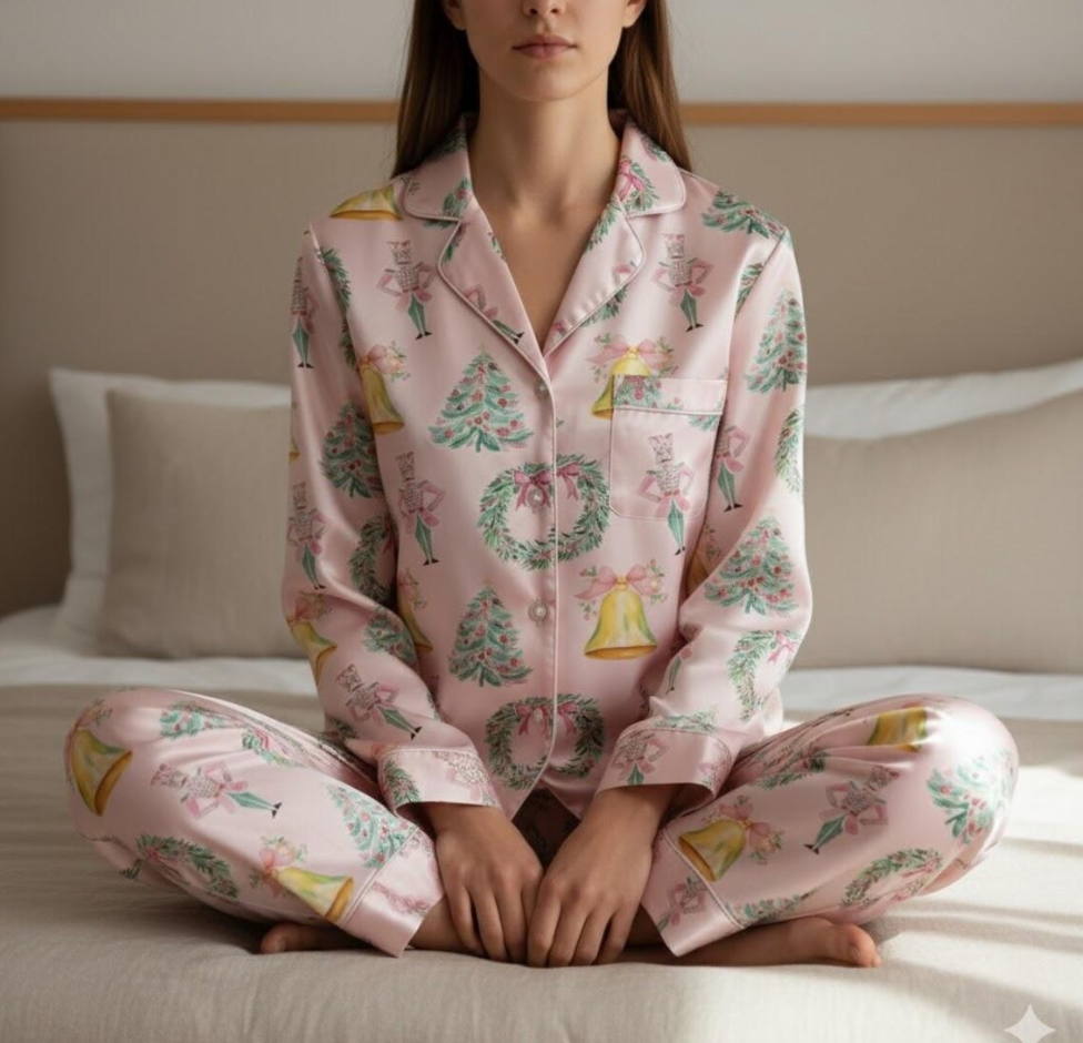 Coquette Nutcracker Christmas Satin Pajamas Set, Coquette Christmas Pajamas Set, Xmas Family Matching Pyjama, Christmas Nutcracker Pajamas