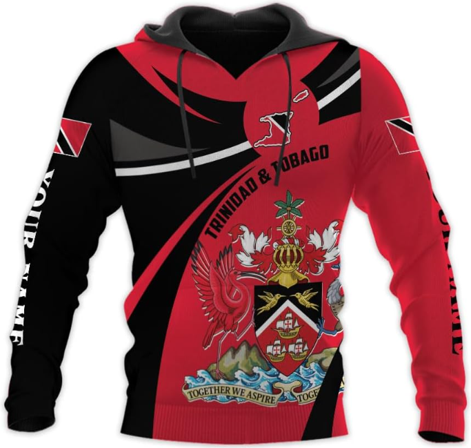Personalized Trinidad & Tobago Hoodie 3D Trinidad and Tobago Coat of Arms Flag Sweatshirt Trinidad Pride Zip Hoodie