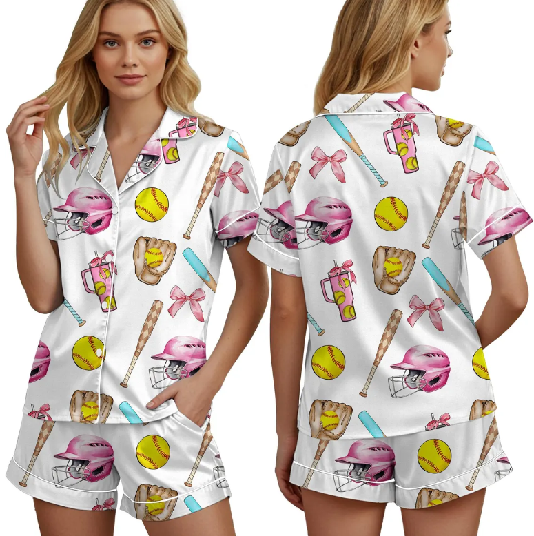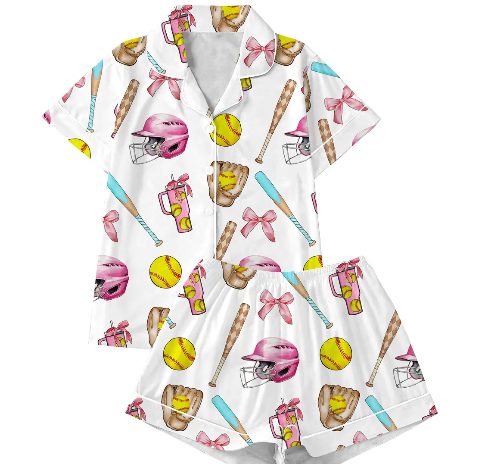 Baseball Coquette Pajamas Satin Set, Game Day Baseball Shirt,Mother's Day Gift, Birthday Gift, Gift For Her, Bridesmaid Gifts, Women Gift