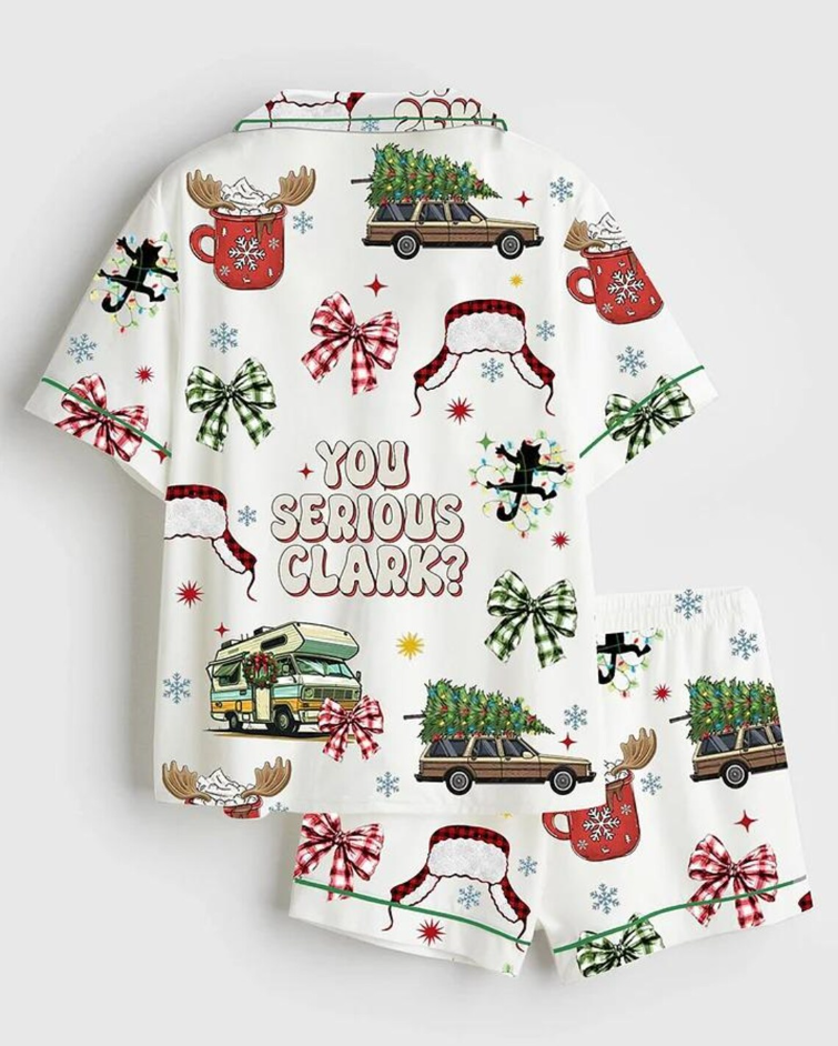 Women’s You Serious Clark Christmas Vacation Satin Pajama Set, Noel Xmas Cowboy Pajamas Party Santa Nightwear, Merry Christmas Gifts For Her