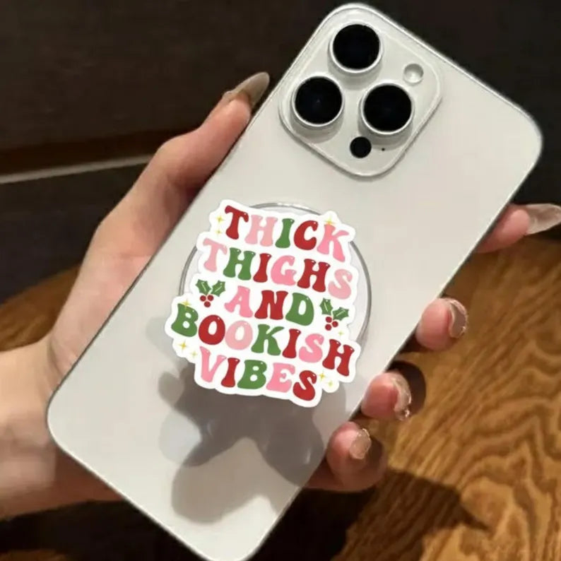 Thick Thighs and Bookish Vibes MagSafe Phone Grip – Curvy Reader GripTok, Christmas Magnetic Popgrip Alternative, Funny Book Lover Gift