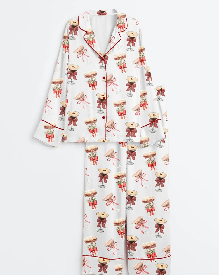 Espresso Martini Christmas Tini Time Social Club Martini Lover Satin Pajama Set, Christmas Espresso Martini Noel Santa, Sleepwear For Women